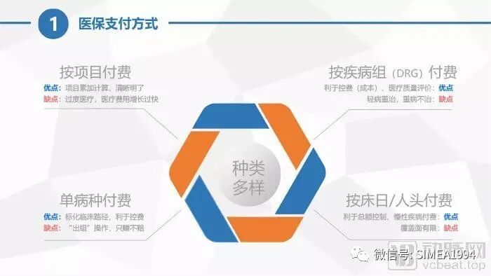 那么,医疗机构应该如何应对即将到来的支付体系改革“暴风雨”,信息化重构在其中将扮演何种角色? DRG、DRG绩效考核和DRG支付 按疾病诊断相关分组(Diagnosis Related Group,下文简称DRG)是一种病例组合分类方案,即根据年龄、疾病诊断、合并症、并发症、治疗方式、病症严重程度及转归和资源消耗等因素,将患者分入若干诊断组进行管理的体系。 DRG最早由美国耶鲁大学管理学院的罗伯特·费特(Robert B. Fetter)和公卫学院的约翰·汤普森(John Thompson)于1967年提出,是国际公认的医疗服务分组标准化管理工具,可用于医疗质量管理、绩效评价、费用控制、支付和预算管理。 目前,全球已有近40个国家及地区应用DRG。尤其美国和德国等先进国家早在上世纪80年代就已经开始应用,积累了丰富的经验。DRG的研发初衷原本是用于医疗质量的管理工具,其目的是帮助临床医生和医院监控服务质量和服务利用率。 它可以将不同的病例按照临床过程同质、资源消耗相近的原则,将不同的病例分组并赋以权重值使之量化,以便对不同服务提供者的服务绩效进行直接比较,从而科学、准确地评价医院、临床科室以及临床医生的临床工作水平。 DRG用于医疗能力评价主要通过两个指标实现,即医院覆盖的DRG组数和病例平均权重数(CMI)。这两个指标分别代表医院医疗服务能力的广度和高度。 覆盖DRG组数的多少可以衡量医院的综合服务能力,覆盖越多说明医院的技术越全面。假设妇产科有10个组,某医院在过去一年里可以采集全部10个组,说明该院的妇产科服务能力很全面。以此类推,医院A可以覆盖400多组,医院B只能覆盖200多,则说明医院B的综合医疗服务能力不如医院A。 CMI则用于衡量整体医疗服务的技术难度高低,数值越大说明难度越高,对应医院的技术水平也越高。CMI的计算方式直观简单,即病例所属分组的平均费用与当地所有疾病平均住院费用的比值。 假设某地一年有300万个出院病例,平均住院费用是15000元,即为当地所有疾病平均住院费用。当地产妇顺产所在DRG组的平均费用为6900元,它与15000元的比值即为顺产组的CMI,为0.46。当地冠脉搭桥术所在DRG组的费用为30000元,其CMI就应该为2。显然,相比顺产,冠脉搭桥术的技术水平要高得多。 那么,假设A医院所有科室在同等病例数量下的平均权重为1.5,B医院仅有0.7,说明A医院技术水平较高,处理疑难杂症的能力较强。 在上世纪70年代末,美国率先尝试了DRG付费试点,获得成功后在全国推广。因此,除了绩效考核,DRG也可以用于付费,也就是疾病诊断相关组-预付费(PPS即Prospective Payment System,下文简称DRG-PPS)。 DRG-PPS是对各疾病诊断相关组制定支付标准,进行医疗费用支付的付费方式。在DRG-PPS方式下,依诊断、治疗手段和病人特征的不同,每个病例会对应进入不同的DRG组。支付方按照病例所进入的DRG组的付费标准进行打包支付。 DRG-PPS通过制定预付标准控制支出,并借助打包付费强迫医疗机构分担经济风险,有效地降低了医院通过过度医疗牟利的可能性,从而实现医疗费用的控制。调查显示,在实施DRG-PPS后,美国医疗费用的增长率由1983年前的16%~18%降低到7%~8%,短期住院率在一年中下降了12%。 在DRG-PPS的压力下,医疗机构不得不主动规范医务人员的医疗行为,增强成本意识,合理使用医疗资源,提高服务质量和工作效率。由于DRG-PPS既兼顾了政府、医院及患者等多方利益,又达到了医疗质量与费用的合理平衡,因此,目前引入DRG的国家和地区大多数不约而同将其应用于支付。 图片来自会议资料,已获权利人授权使用 与按项目付费和按床日/人头付费等方式相比,DRG-PPS的确在控费上有着独到的优势。 单病种付费与DRG-PPS虽然有些类似,但在分组原理上完全不同。单病种付费不考虑合并症和并发症,根据单一病种分组。DRG-PPS则是综合考虑合并症和并发症及病人其他情况,将病种归入多个病组。 因此,单病种付费在实际应用中灵活性很差,也不符合实际情况。医院则可以通过将耗费资源较多的病例从单病种付费体系中去除来予以规避。正因为此,考虑了合并症并发症及病人其他情况的DRG-PPS相比单病种付费,具有更好的可操作性和科学性。 当然,DRG-PPS并不是万能的。它也有自己的局限性。只有诊断和治疗方式对病例的资源消耗和治疗结果产生显著影响的病例,比如,急性住院病例才适合DRG-PPS发挥。至于门诊病例、康复病例、需要长期住院的病例,以及同样病组但消耗资源和治疗效果迥异(如精神障碍类)的病例并不能发挥DRG-PPS的优势。 我国DRG-PPS的实施进程及规划 我国很早就开展了DRG-PPS的研究。北京市医院管理研究所(即后来的北京市卫生健康委员会信息中心)早在上世纪80年代末便开展DRG研究。2008年,综合美国和澳大利亚DRG版本,我国开发出国内第一个DRG分组方案BJ-DRG。 2011年,北京市在6家三甲医院选择了108个DRG分组进行DRG-PPS试点,为DRG-PPS后续运行积累了宝贵的经验和教训。 随着我国卫生费用近年来激增,对医保造成巨大压力,可以有效控费的DRG-PPS的实施显得势在必行。2011-2015年,我国卫生总费用由2.43万亿元迅速上涨到4.09万亿元,占GDP比例由5.03%快速增长至6.0%。 在卫健委不久前公布的《2019年我国卫生健康事业发展统计公报》中,2019年全国卫生总费用预计达6.52万亿元,占GDP比例已达6.6%的水平。 此外,2018年,医保支出增速第一次超过了医保收入增速——如果按照